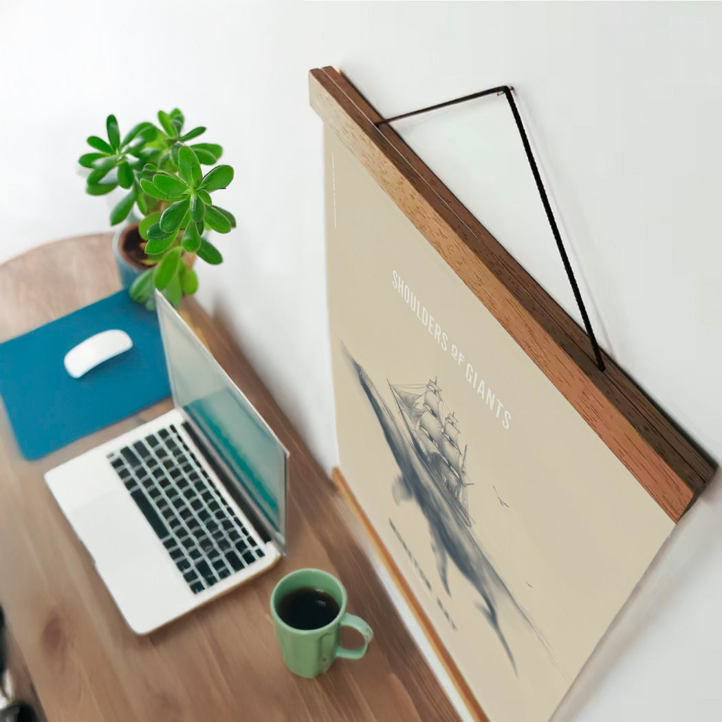 Discover the wonder of Shoulders of Giants, our most popular canvas print. A humpback whale carries a tall ship across the sea, capturing the romance of Moreton Bay’s exploring days and the timeless magic of the ocean. Printed on canvas with a magnetic teak wood hanger, 500 x 600mm portrait, ready to hang.