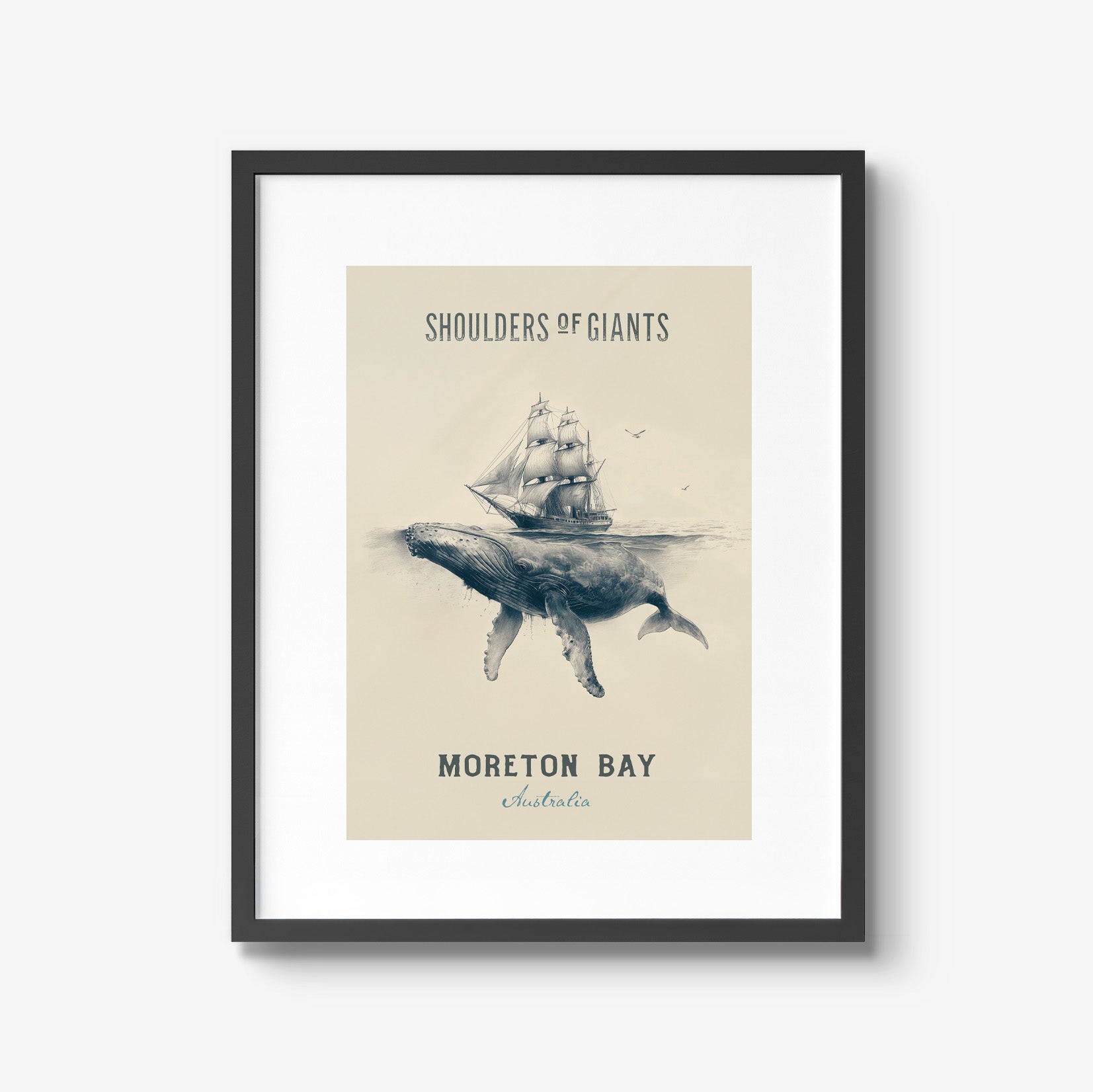 Discover the wonder of Shoulders of Giants, our most popular print. A humpback whale carries a tall ship across the sea, capturing the romance of Moreton Bay’s exploring days and the timeless magic of the ocean.